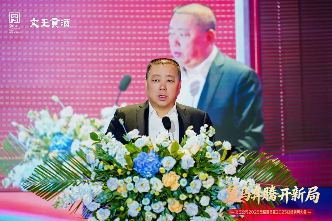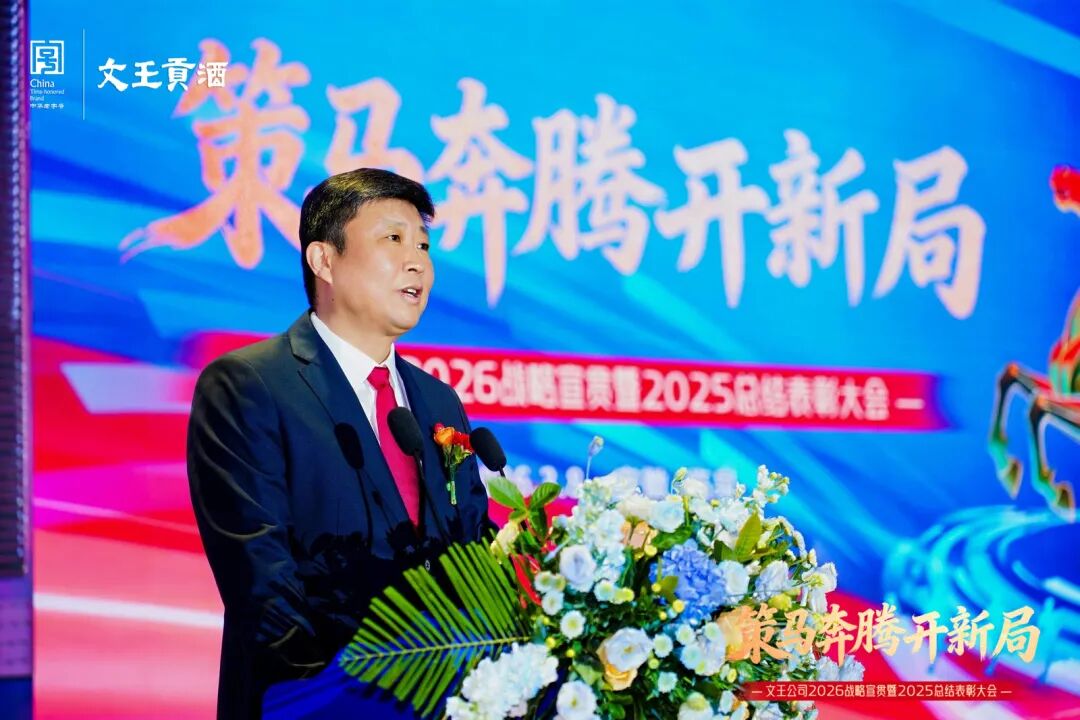 文王酒业党委书记王越登台,重磅发布了《策马奔腾开新局——2026文王酒业战略宣贯报告》。