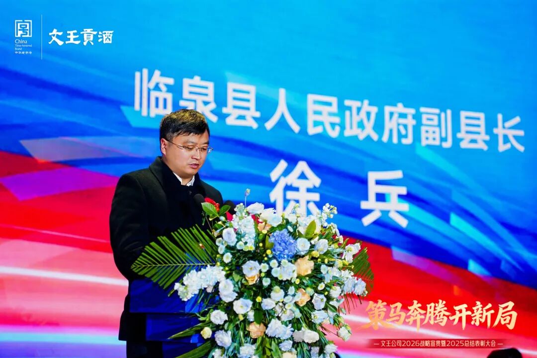 临泉县人民政府副县长徐兵亲临大会并作重要讲话。县领导指出,2025年临泉地区生产总值跃升至全省第12位,这份亮眼成绩的背后,文王酒业作为本土龙头企业发挥了至关重要的支撑作用。从助力推广“看杂技、吃羊肉、喝文王”的临泉三件套,到依托文旅平台让文王贡酒成为城市文化名片;从稳定带动上下游产业链就业,到依法诚信纳税、热心公益,文王酒业真正做到了“企业兴则县域兴”。
