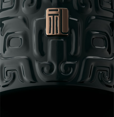 以礼御器,以中国樽为瓶型,以文王冠为瓶盖,以青铜饕餮为图腾,整个器型如同周朝天子,